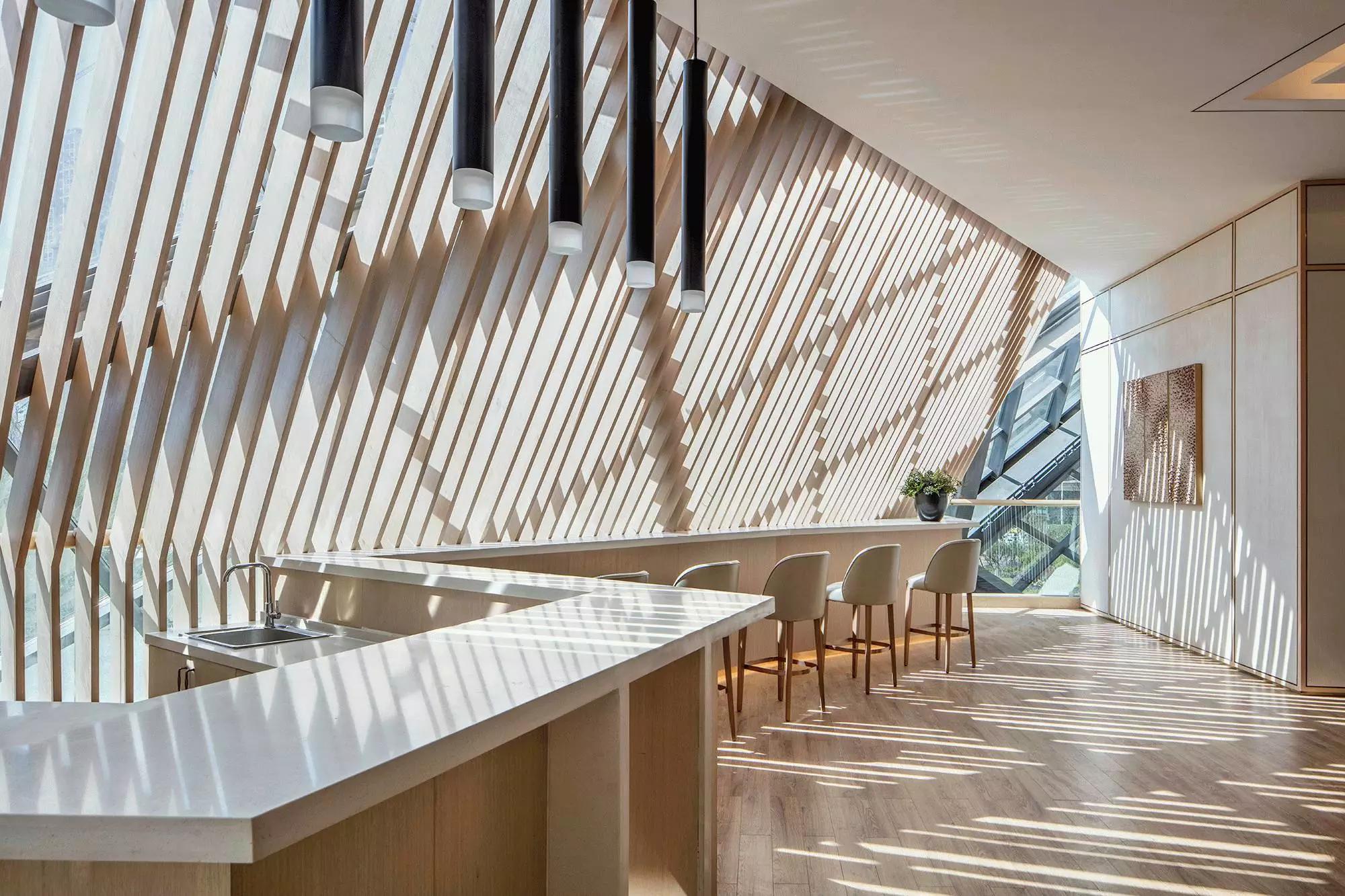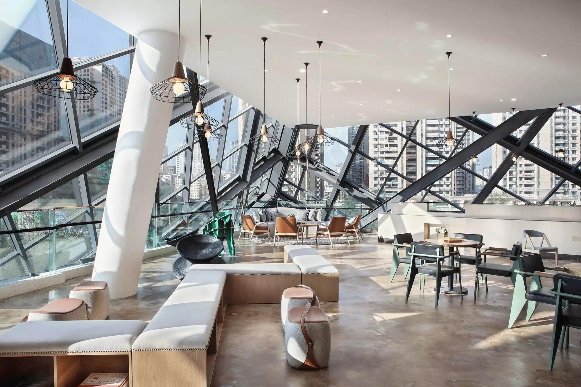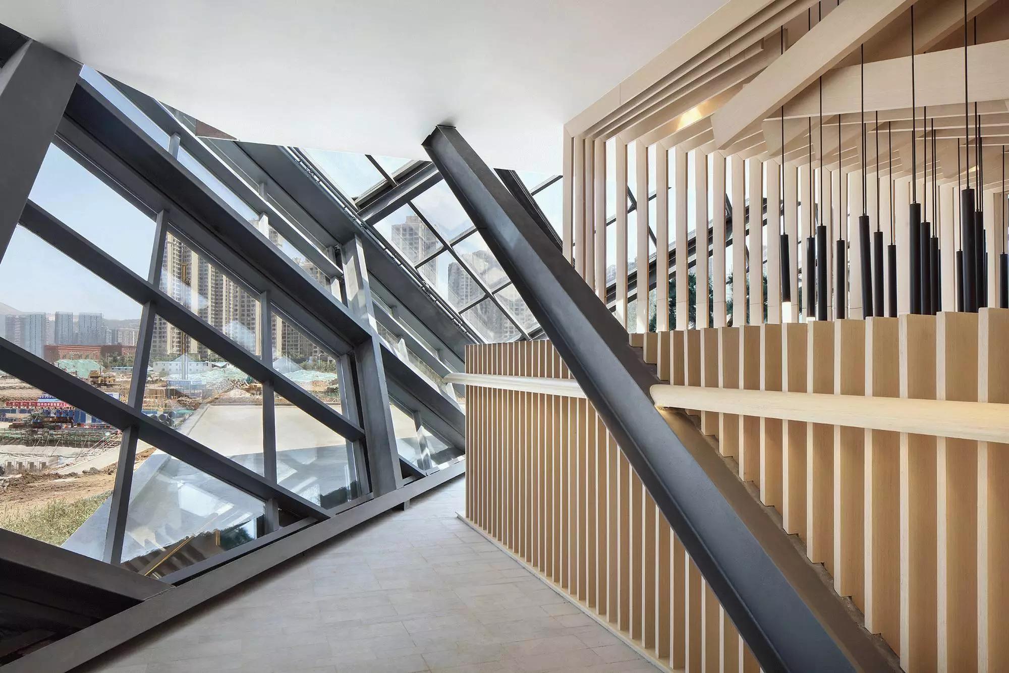 項目原屬昆明聯(lián)想科技城,后由融創(chuàng)地產(chǎn)接盤,他們希望將該建筑打造成為集辦公、商業(yè)、展示等多元化為一體的空間,并使其成為昆明新的城市地標建筑。接手本案的主創(chuàng)設計師是默存設計的季青濤,作為具有建筑師背景的主創(chuàng)設計師,從建筑空間的思維從事空間設計便成為一種必然。在原有“盒子”空間的內(nèi)部,設計師以木結構對空間進行了重組和分割。