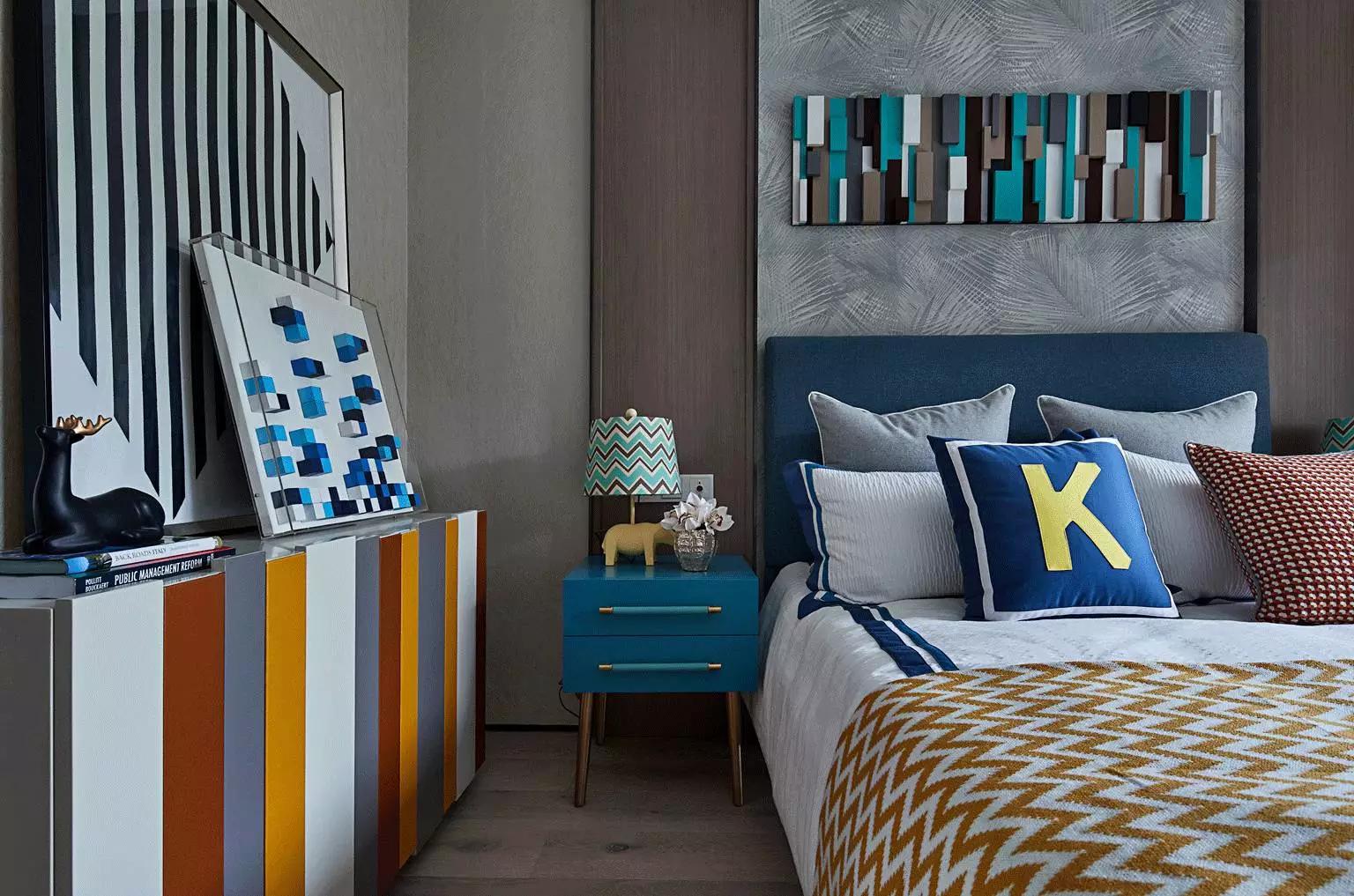 都市雅痞們的下一代,也必將是特立獨(dú)行,善于接受新事物的。所以在兒童房的設(shè)計(jì)中,加入了時(shí)下流行的樂(lè)高元素,不同色彩的積木條,不僅增添空間趣味性,也拉近了父母與孩子的距離。