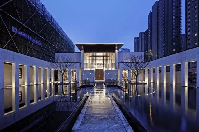 穿過(guò)充滿東方韻味的水中步道,在移步易景的氛圍里,不自覺(jué)地調(diào)慢身心節(jié)奏,悠然步入接待中心。設(shè)計(jì)師不拘泥于傳統(tǒng)石材的形體結(jié)構(gòu)和飾面方式,大膽創(chuàng)新地更改重構(gòu)。