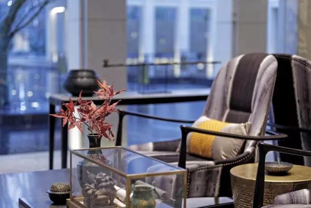 玻璃窗外,暮色朦朧氤氳中,充盈著自然的綠意,一處盆景,暖樹(shù)染綠,更添別樣情致。深色的金屬和皮革的質(zhì)感,簡(jiǎn)化形態(tài)的中式家具,香爐書(shū)卷,幾處綴花,穿越時(shí)空,對(duì)話古今。“到處皆詩(shī)境,隨時(shí)有物華”大抵如此。