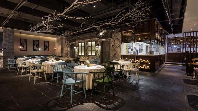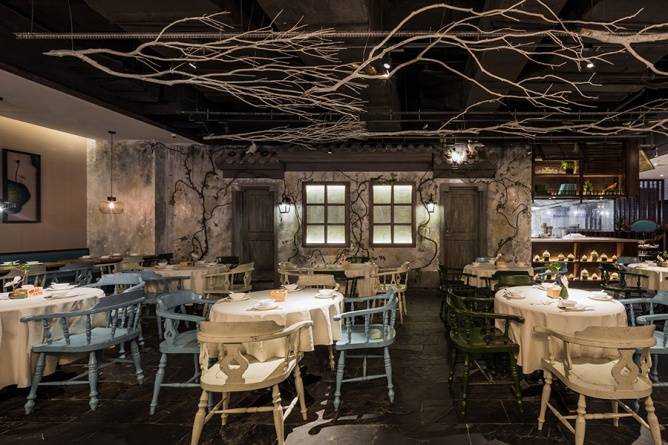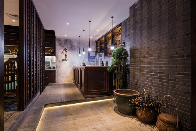 從遠(yuǎn)處望過來,一座江南小院落入眼中,白墻青瓦小橋流水,以清靈的體態(tài),展示萬般風(fēng)韻。 經(jīng)典的江南建筑別有恬靜內(nèi)秀的韻味,而江南院落給人一種,優(yōu)雅、寧靜、親切的感覺,正是生活在浮躁社會(huì)中的我們所缺失的,所以在本案中設(shè)計(jì)師以江南的小院的作為此次設(shè)計(jì)主題。無論是舊時(shí)還是依稀,江南水鄉(xiāng)的一山一水一物,均是文人墨客筆下的絕妙勝景,盡顯江南的風(fēng)情。而這次,跟緊我的腳步來領(lǐng)略屬于江南的意境。 整個(gè)店面的平面布局是根據(jù)江南小院建筑布局來延伸切入,以格局的形式將餐廳分成了院入口,陽臺(tái),閨房等五大板塊。江南建筑,高低錯(cuò)落,古樸幽靜,含蓄內(nèi)斂。 有的枕山面水,有的面河而居,有的夾河而造,清澈的河水,輕盈的小橋,窄窄的街巷,深深的庭院,凝練成江南水鄉(xiāng)傳統(tǒng)民居的典型意境。 為了把這意境體現(xiàn)的淋漓盡致,設(shè)計(jì)師將入口處抬高,錯(cuò)落有致,營造出“曲徑通幽處,禪房花木深”的氛圍,令人漸入佳境,而這對(duì)空間的分割,避免平鋪直敘的蒼白,也是為餐廳增添了幾分寧靜。 |